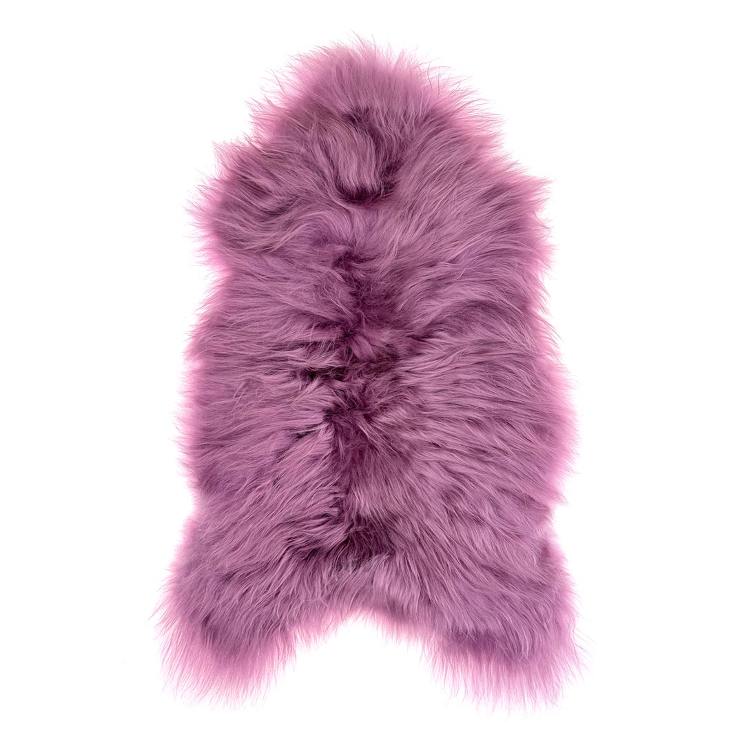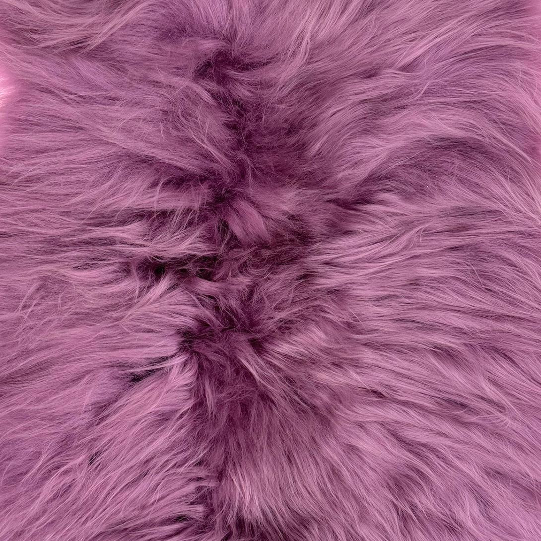 Färgat Isländskt Fårskinn med mjuk lång ull. Färg: Ljus Lila, Skinnet är mer matt i färgen än på bilden.