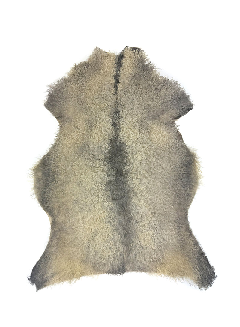 Fint gotländskt lammskinn med mjuka små lockar i grå och vita färgar. Härligt mindre lammskinn från ett Gotlandslamm. Skinnet är av lite tunnare kvalitet, därav också mindre pris.